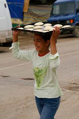 Cheap and tasty bread, that accompanies most foods in Morocco. They sell them all day long on the street-shops or from carts just like the one on the photo, costs 1-1,5 DH/piece. I've had quite a few times a situation that i want to buy the bread, but when i start paying it turns out i have no coins and only some bigger bank notes. And so many times the vendor has just given me the bread, sometimes saying something like "Welcome to Marrakech" etc.